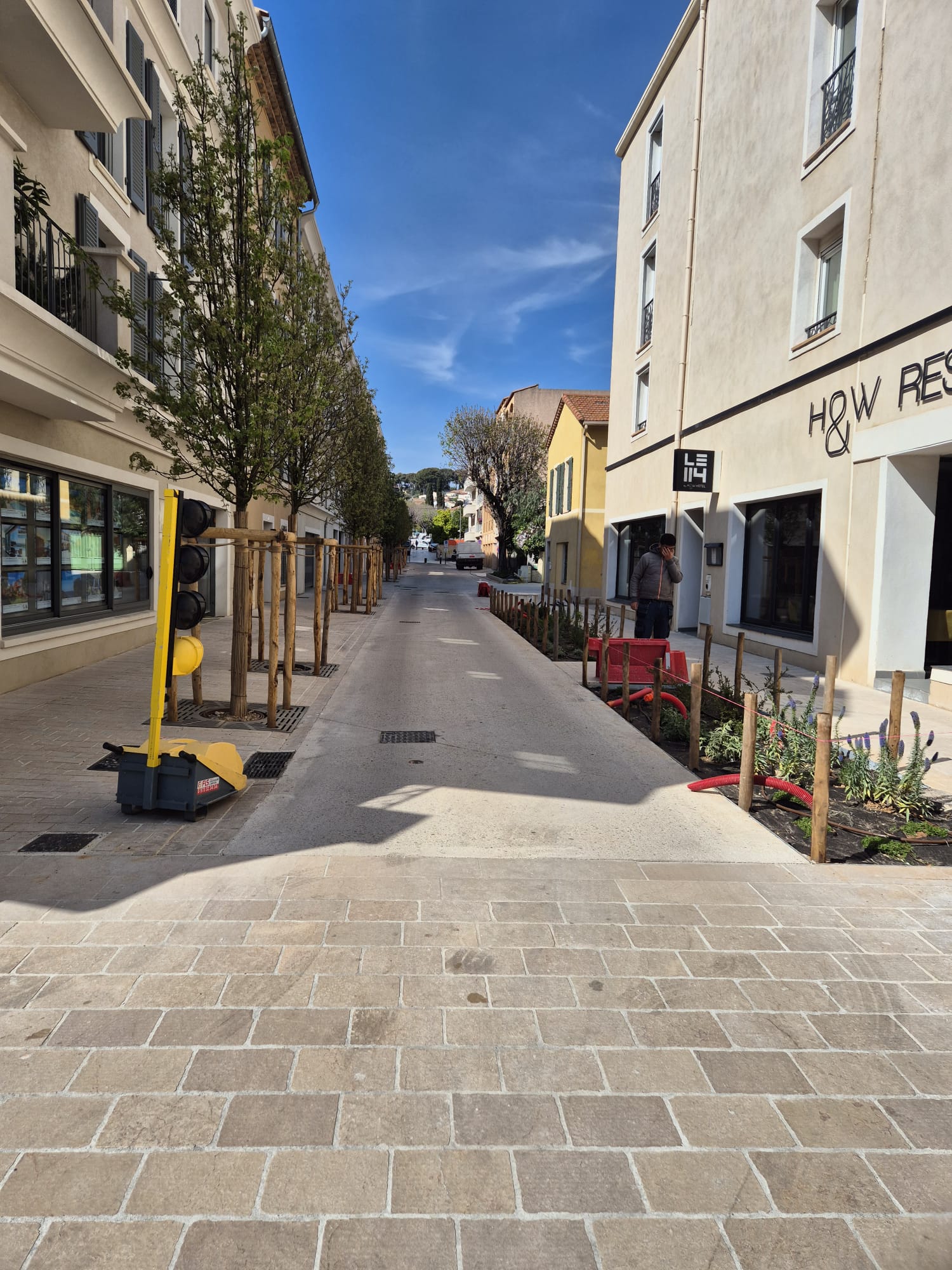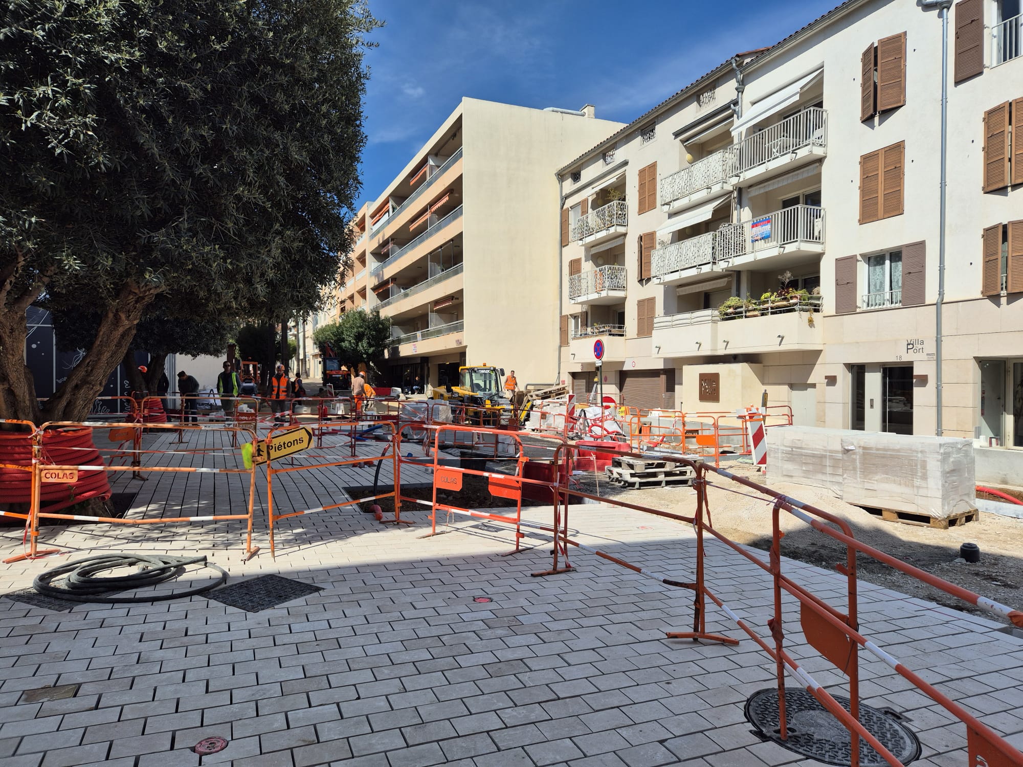Dans la rue Robert Schuman, des travaux continuent pour créer un nouvel espace pavé et deux placettes urbaines, mettant en valeur la médiathèque et le musée de la Mer. Cette rue sera piétonne et équipée de mobilier urbain, favorisant les rencontres intergénérationnelles.