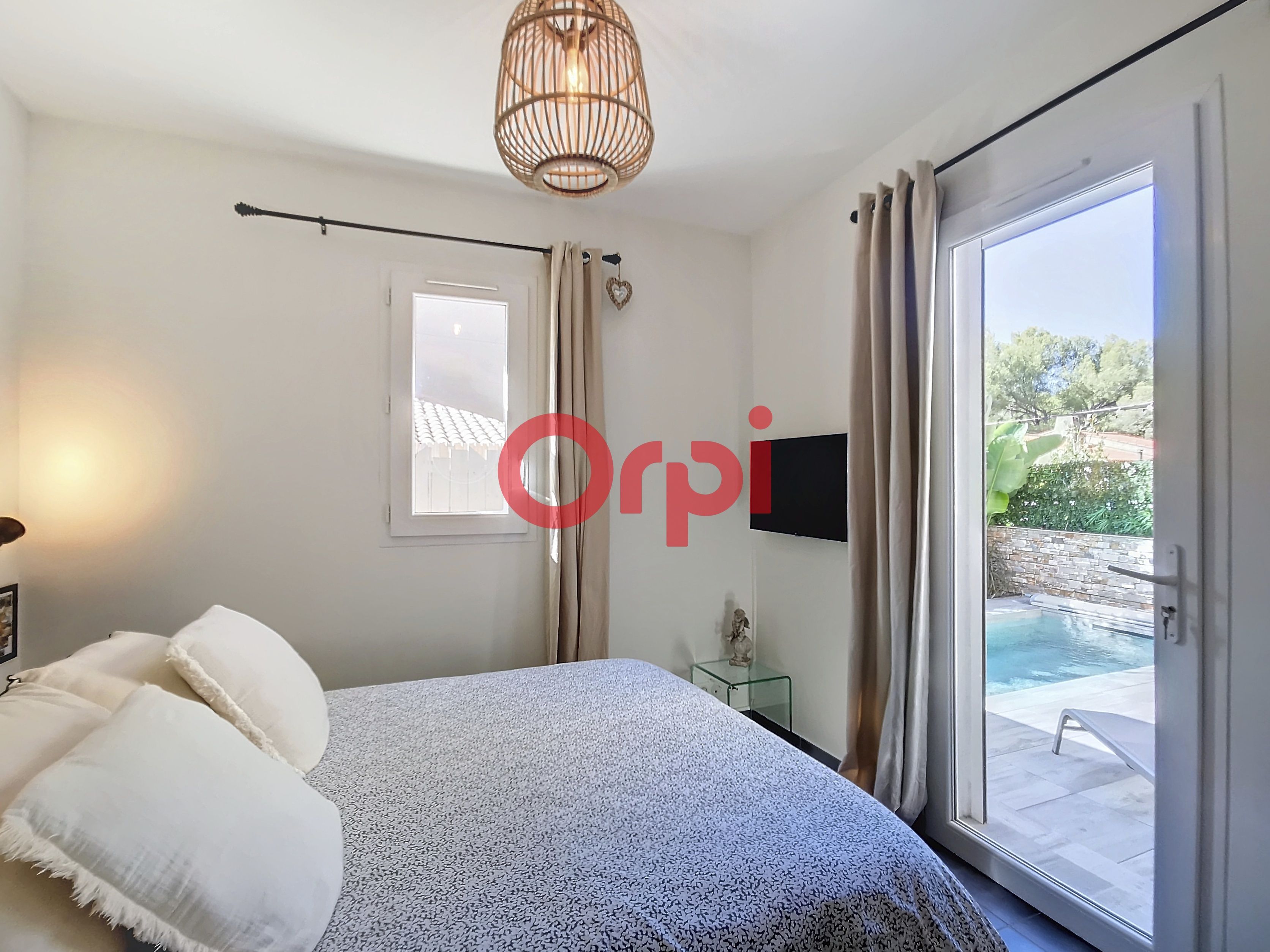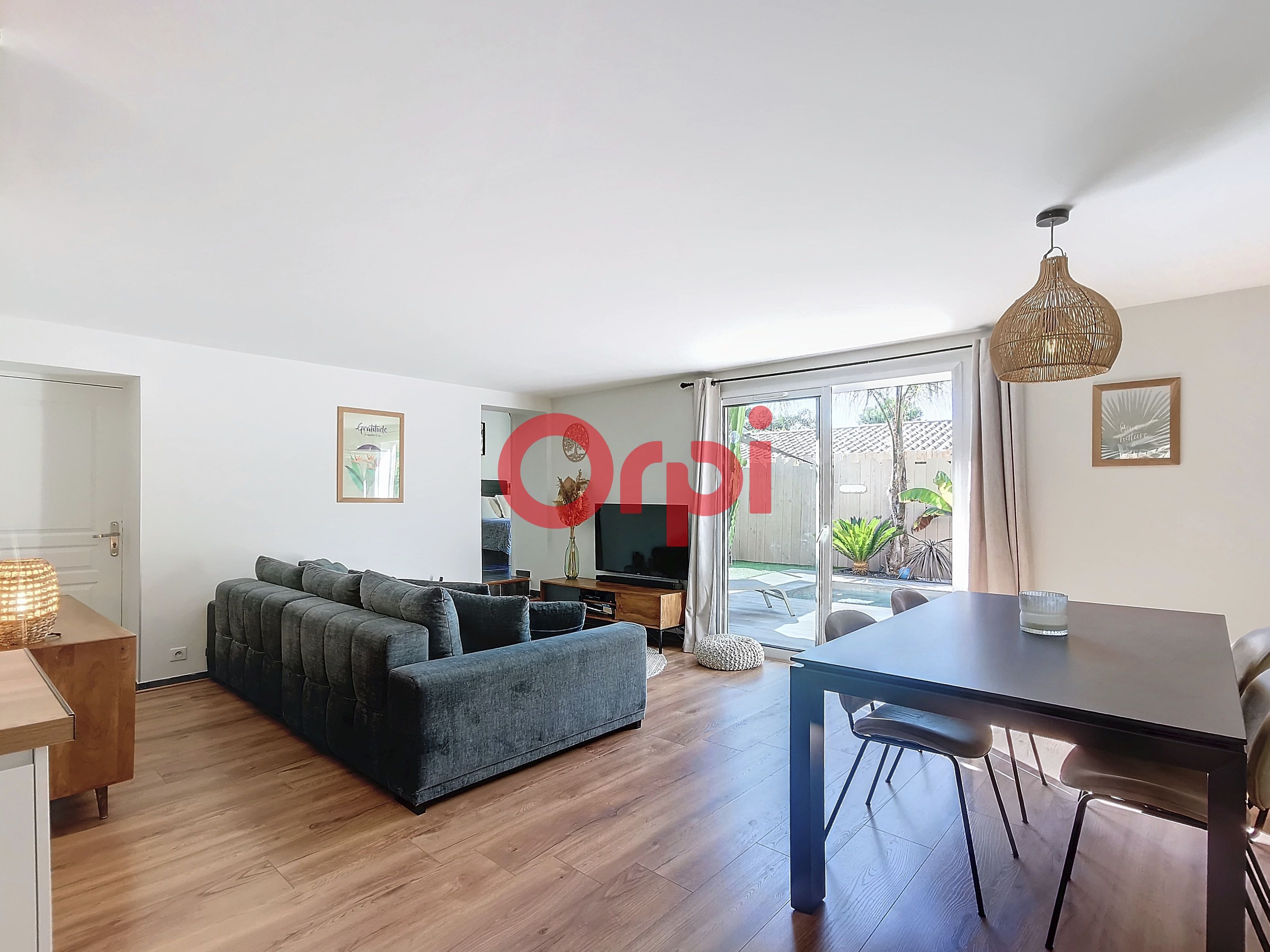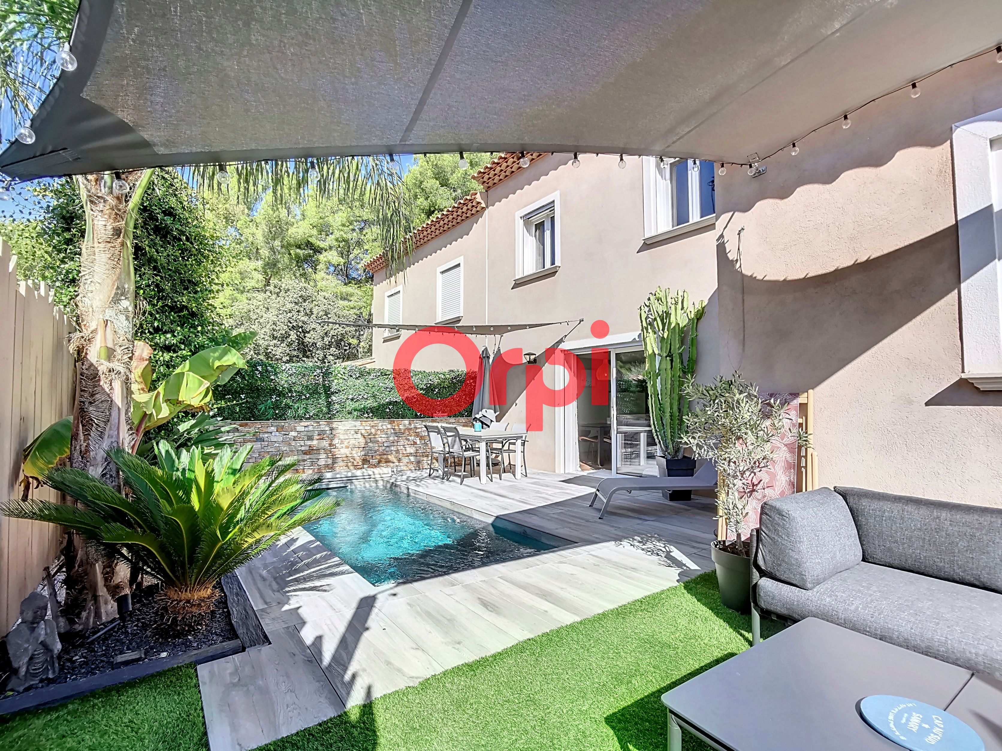 L’agence immobilière Orpi Cabanis à Sanary-sur-Mer vous propose en exclusivité à la vente une maison de 4 pièces avec piscine, garage et places de parking, dans un cadre verdoyant, une opportunité rare à ne pas manquer. Située dans le secteur recherché de Pierredon, cette charmante maison mitoyenne fait partie d’un ensemble de 4 logements et offre une qualité de vie idéale, alliant nature et proximité du centre-ville. Avec une superficie habitable de 98,92 m² (78,50 m² Loi Carrez), elle se distingue par un agencement optimisé et lumineux. Le salon-séjour, associé à une cuisine ouverte, s’ouvre directement sur une terrasse et une piscine sécurisée. Une chambre de plain-pied avec salle d’eau et un WC séparé complètent le rez-de-chaussée. À l’étage, deux chambres spacieuses avec placards et mezzanines, une salle de bains et un WC séparé offrent confort et intimité. L’extérieur constitue un véritable atout coup de cœur : terrasse ensoleillée et piscine pour profiter des beaux jours. Un garage de 17,75 m² et deux places de parking privatives viennent compléter les prestations de cette maison. L’exposition plein sud garantit une luminosité exceptionnelle tout au long de la journée, créant une atmosphère chaleureuse et accueillante. Côté équipements, vous apprécierez le double vitrage avec volets roulants électriques, la climatisation réversible, l’alarme et la domotique pour un confort quotidien optimal. L’emplacement est idéal, à moins de 10 minutes du port et du centre-ville de Sanary-sur-Mer, et à proximité immédiate des commerces. Cette maison est proposée au prix de 550 000 € (honoraires à la charge du vendeur) et vous est présentée en exclusivité par votre agence immobilière Orpi Cabanis, qui se tient à votre disposition pour vous accompagner dans votre projet. Pour organiser une visite ou obtenir plus d’informations, contactez dès maintenant votre agence immobilière Orpi Cabanis au 04.94.74.16.16 ou par email à cabanissanary@orpi.com. Ne laissez pas passer cette opportunité exceptionnelle proposée par l’agence immobilière Orpi Cabanis, à découvrir rapidement !